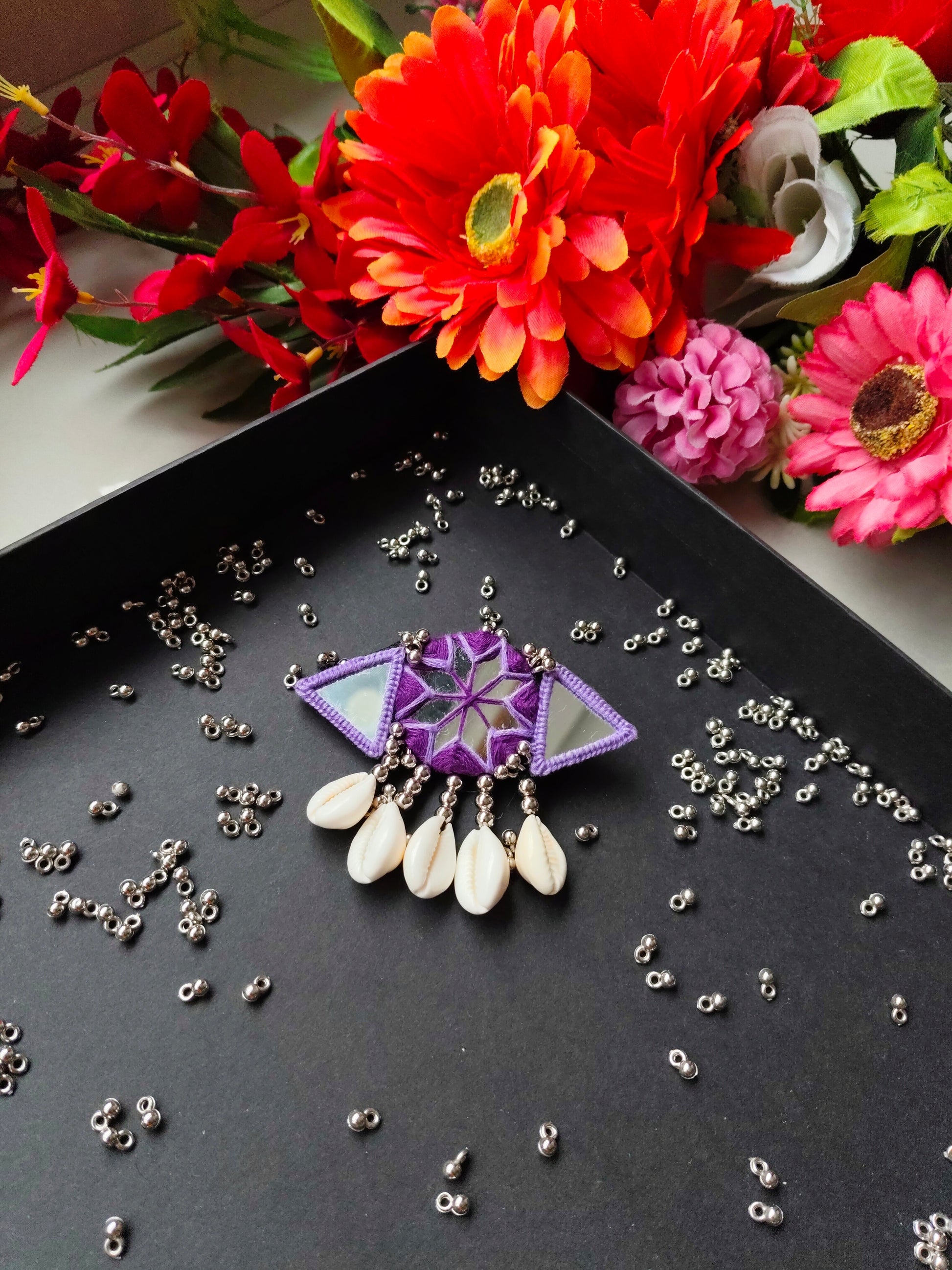 • Embellishments: Four natural cowrie shells dangle from the base, adding an organic, bohemian elegance.