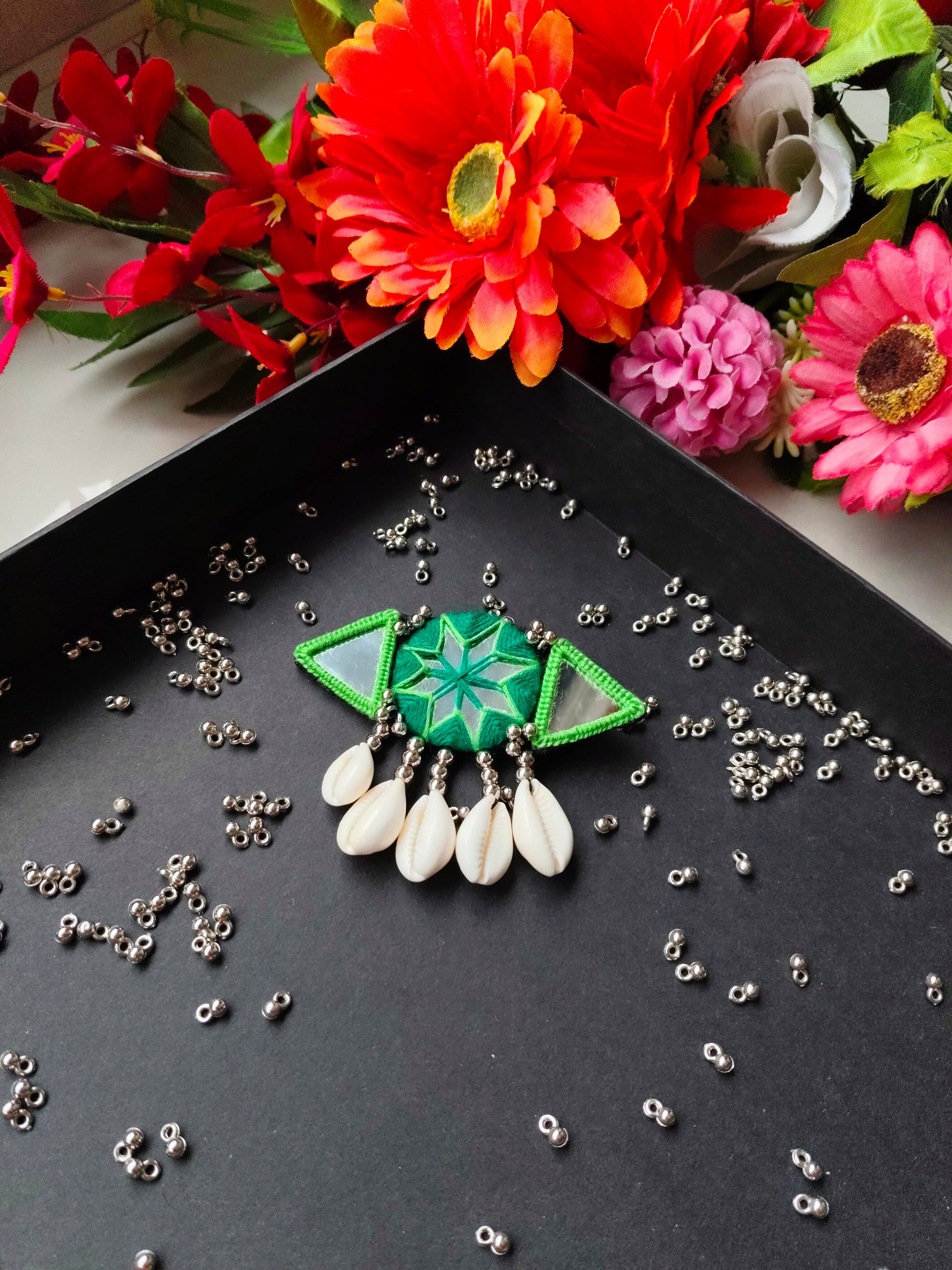 • Embellishments: Four natural cowrie shells dangle from the base, adding an organic, bohemian elegance.
